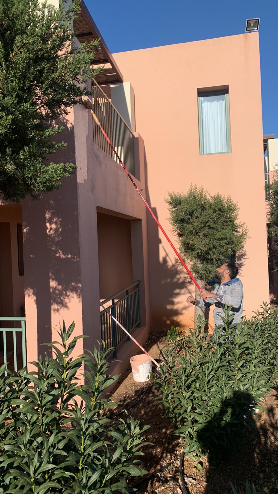 Το Village Height Resort βρίσκεται στην Χερσόνησο Ηρακλείου και ανήκει στον όμιλο ξενοδοχείων της Κας Κωνστάντζας Σμπώκου. Η εταιρία μας έχει αναλάβει όλους τους χρωματισμούς από το 2022 έως και σήμερα τόσο στην συντήρηση όσο και στις ανακαινίσεις. Η εταιρία μας έχει τη συντήρηση σε εσωτερικούς – εξωτερικούς χρωματισμούς, βαφές Kourasanit,σπατουλαριστά, βαφή ξύλινων και μεταλλικών επιφανειών.